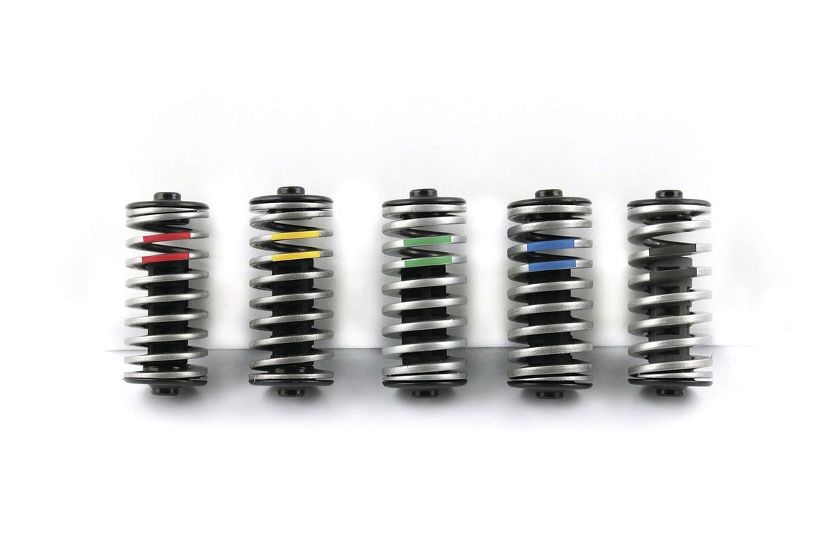 LangbeschreibungAustausch-Federelement<br>für by,schulz Sattelstützen<br>Grundfarbe silber mit Farbcode<br>für Härteprofil/ Fahrergewicht<br>Flachdrahtstahlfeder mit innenliegendem<br>Elastomer<br>Länge: 72 mm