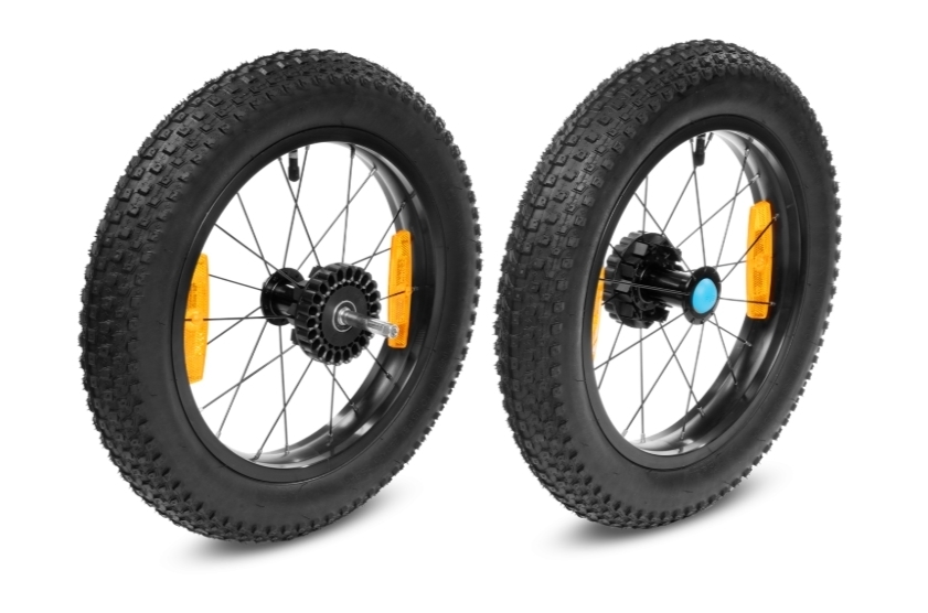 Art. NR: 1456158Die Fat Wheels sind die ideale Wahl, wenn Du mit Deinem Kinderanhänger/Buggy auch einmal auf Schnee oder Sand unterwegs bist – die extra breiten Reifen bieten optimalen Grip und Stabilität.