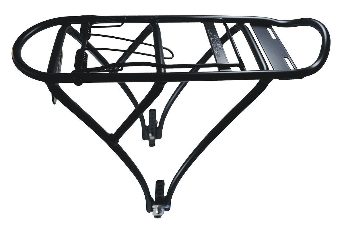 LangbeschreibungAluminium<br>3 Streben<br>mit Federklappe<br>Rücklicht/Reflektor Halter<br>mit rostfreien Schrauben<br>inkl. vordere Streben<br>Breite: 12,3 cm<br>geprüft nach ISO 11243
