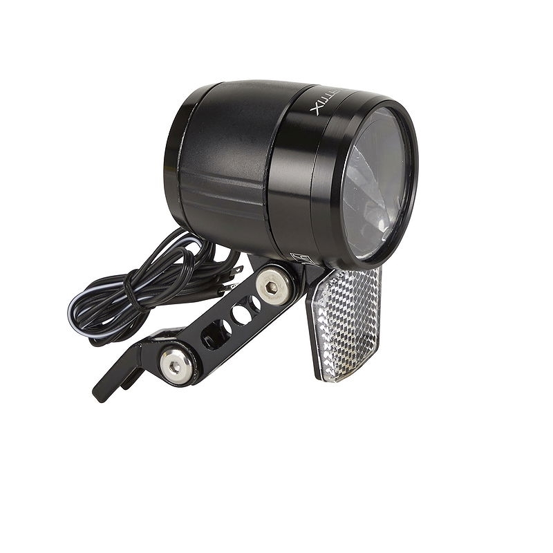 LangbeschreibungScheinwerfer mit LED-Technologie<br>100 Lux Leistung<br>mit Überspannungsschutz<br>Frontreflektor<br>mit zusätzlichem Standlicht <br>und Helligkeitssensor<br>An-/Ausschalter für Nabendynamo<br>Alu/Kunststoffgehäuse<br>mit Aluminium Halter<br>StVZO zugelas