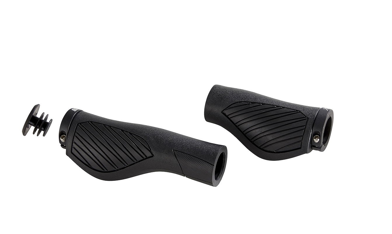 LangbeschreibungRubbergriff mit offenem Ende<br>Zwei-Komponenten-Material für<br>eine gute Stoßabsorbierung<br>mit breiter Handballenauflage<br>für guten Komfort<br>einseitiger Lockring Alu<br>für festen Sitz des Griffs am Lenker