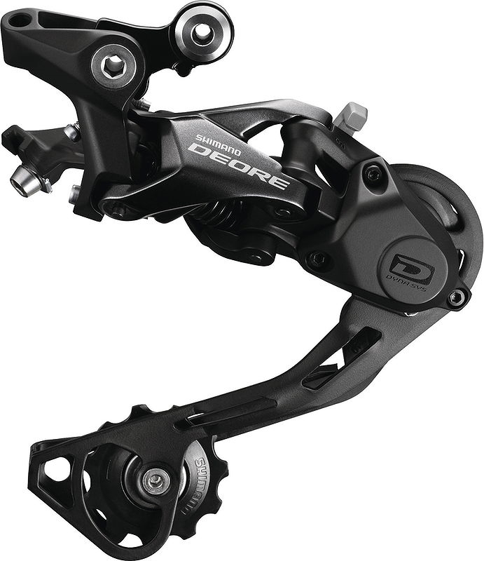 LangbeschreibungMTB Schaltwerk Deore<br>Shimano Shadow Plus Design<br>die Dämfungstechnologie verhindert<br>Kettenschlagen und vermindert <br>Kettenabwürfe <br>flaches Profil für den Einsatz<br>in anspruchsvollerem Gelände<br>DYNA-SYS-kompatibel<br>4 Gelenkbuchsen Fluori